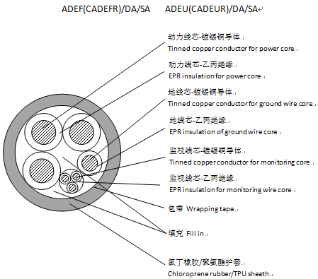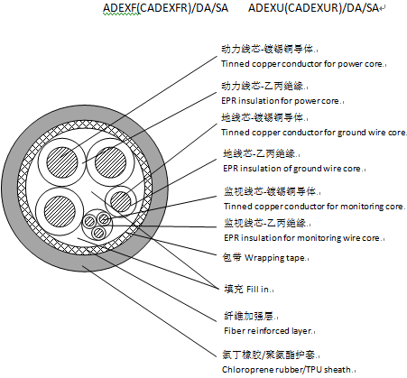 乙丙絕緣纖維編織加強(qiáng)層聚氨脂護(hù)套船岸連接電纜,DA/SA型 EPR insulated fiber braided reinforcement TPU sheathed Ship-to-Shore Connection Cable,Type DA/SA |