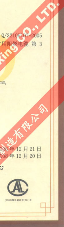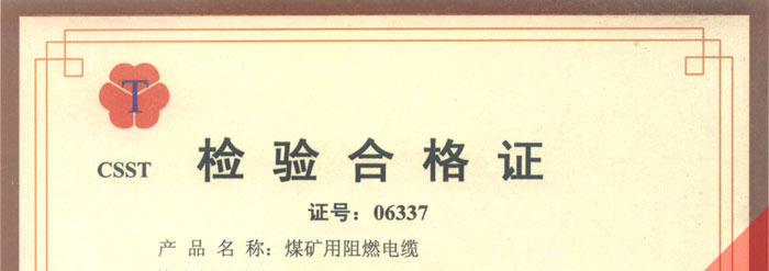 國(guó)家采煤機(jī)械質(zhì)量監(jiān)督檢驗(yàn)中心檢驗(yàn)合格證--煤礦用阻燃電纜(MHYV,MHYVP)