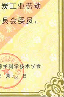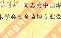 聘請(qǐng)董事長(zhǎng)陳有新為中國(guó)煤碳工業(yè)勞動(dòng)保護(hù)科學(xué)技術(shù)學(xué)會(huì)安全監(jiān)控專(zhuān)業(yè)委員會(huì)委員證書(shū)