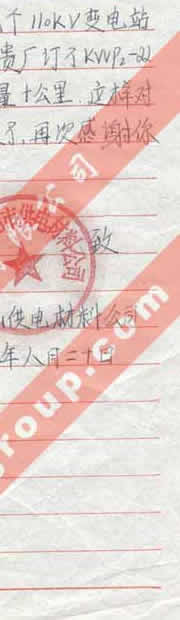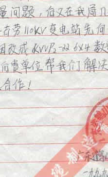 廣東鶴山市供電材料公司對(duì)我公司產(chǎn)品質(zhì)量和幫助解決工程設(shè)計(jì)問(wèn)題的贊譽(yù)