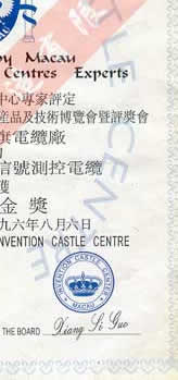 96澳門第七屆仲夏國際精品暢銷產(chǎn)品及技術(shù)博覽會金獎