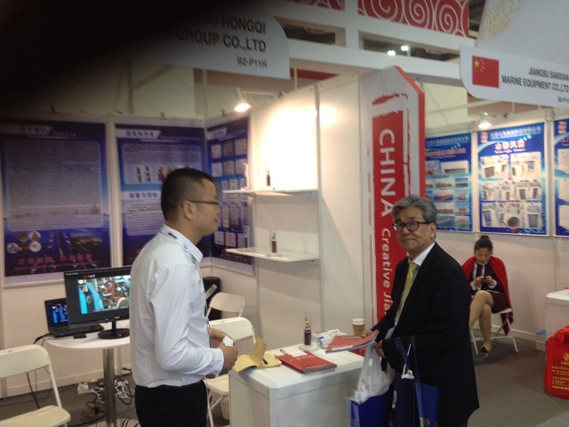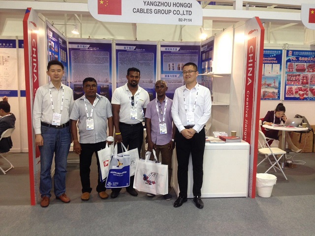 公司的展臺上“和字”牌系列船用(船舶)電纜、海洋工程電纜吸引了來自許多不同國家客商的濃厚興趣,他們紛紛駐足詢盤,感慨地說ship cables Made in China,有的則表示了意向的采購計(jì)劃,有的與公司現(xiàn)場工作人員進(jìn)行了合影留念。