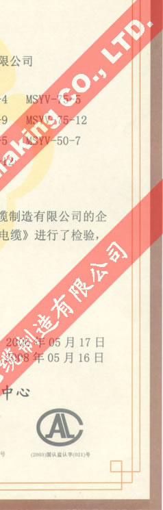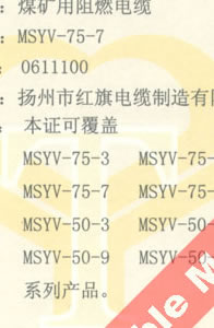 國(guó)家采煤機(jī)械質(zhì)量監(jiān)督檢驗(yàn)中心檢驗(yàn)合格證--煤礦用阻燃電纜(MSYV-75-7)