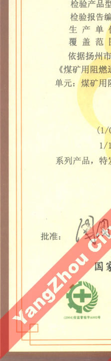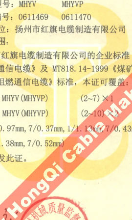 國(guó)家采煤機(jī)械質(zhì)量監(jiān)督檢驗(yàn)中心檢驗(yàn)合格證--煤礦用阻燃電纜(MHYV,MHYVP)