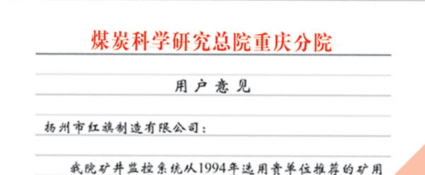 煤炭科學(xué)院總院重慶分院對(duì)我公司長(zhǎng)期以來(lái)產(chǎn)品各項(xiàng)性能符合要求、質(zhì)量穩(wěn)定、交貨及時(shí)、服務(wù)周到的贊譽(yù)