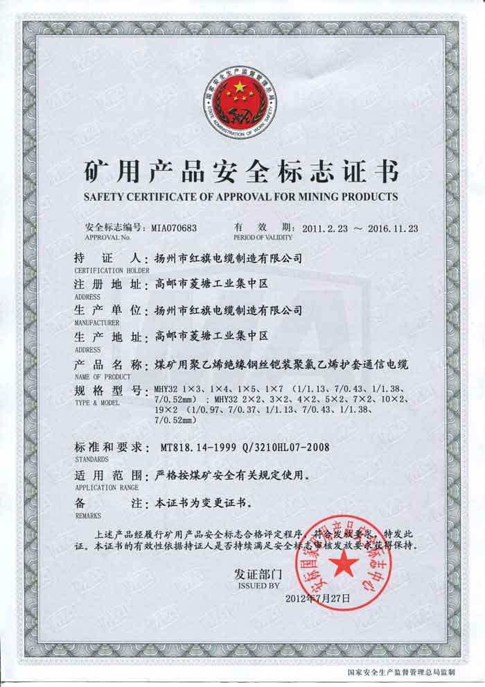 煤礦礦用產(chǎn)品安全標(biāo)志證書-MHY32