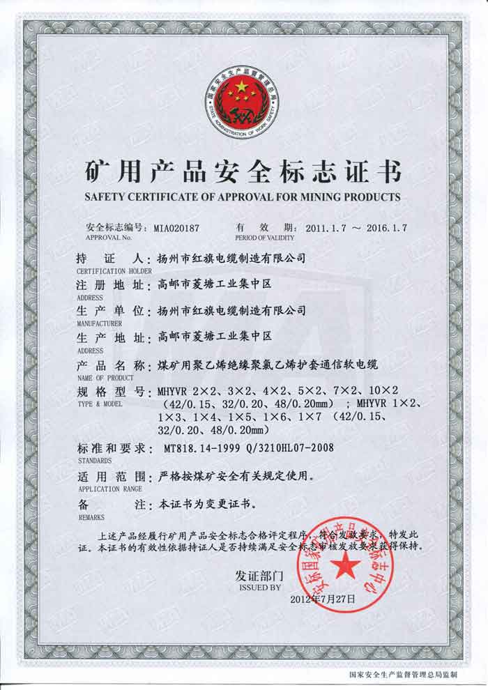 煤礦礦用產(chǎn)品安全標(biāo)志證書-MHYVR