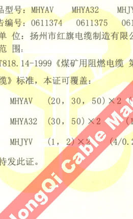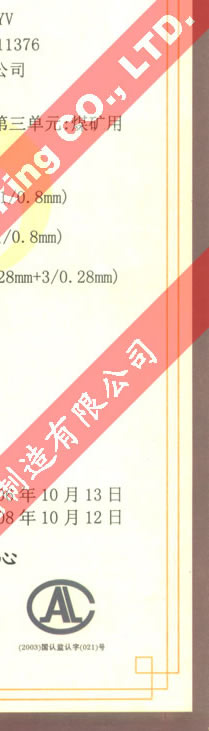 國家采煤機(jī)械質(zhì)量監(jiān)督檢驗(yàn)中心檢驗(yàn)合格證--煤礦用阻燃電纜(MHYAV,MHYA32,MHJYV)