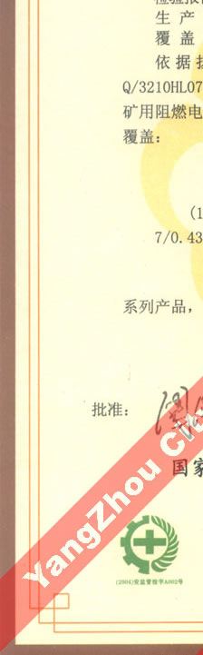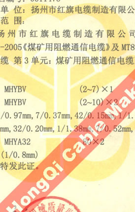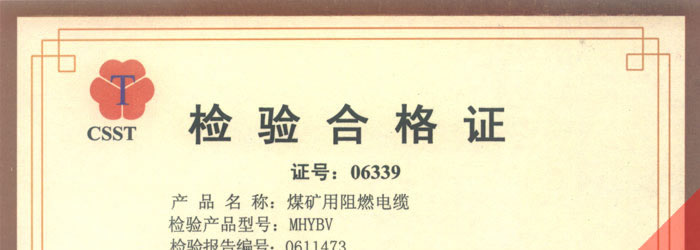 國(guó)家采煤機(jī)械質(zhì)量監(jiān)督檢驗(yàn)中心檢驗(yàn)合格證--煤礦用阻燃電纜(MHYBV)
