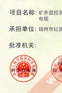 國家重點新產(chǎn)品證書(礦井監(jiān)控系統(tǒng)用本安型無鹵低煙屏蔽信號電纜)