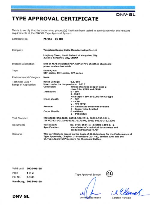 船岸連接電纜工廠認可