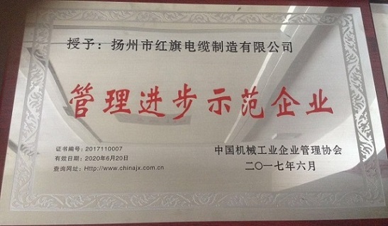 紅旗電纜被中機(jī)企協(xié)授予“機(jī)械工業(yè)管理進(jìn)步示范企業(yè)?”稱號